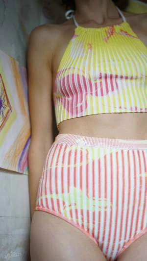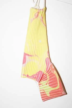 ‘Garden of Mila’ Mixed Marble Print. Shrunken Ribbed Halter Top.