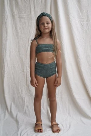 From House of Paloma Spring/Summer 2021. Signature shirred top and bottom in a deep sage green cotton.