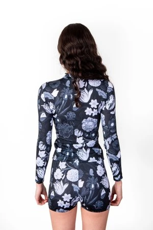 The Olive bottoms are high waisted shorts. These bottoms are part of our S / S 2020 collection, Fallen Blossoms, which is inspired by Dutch still life paintings.