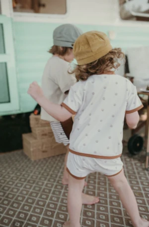 Our Leo swim shirt is the perfect summer staple, a new take on the traditional rashie, providing more comfort, stretch and movability with its unique and stylish appeal. The creamy nude tone, subtle peace print and contrast trim on a matte finish recycled PE really provides the perfect combination with short sleeves and a relaxed fit, allowing for great all day comfort and play.