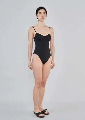 An underwire one piece with a flattering balconette neckline and mid rise leg from Nu Swim. Features adjustable straps and flattering vertical seams on the bodice. Fully lined with 2 way stretch. Fabric is sourced from Northern Italy.