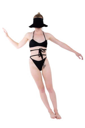 High cut swim briefs with crossover waistbands. Made with sustainable regenerated ECONYL nylon with SPF 50+ sun protection, providing the piece with strength, complete coverage, and high chlorine resistance. Double layered high cut style, dipped at the front, with medium coverage through the back. Waist straps can be placed wherever comfortable. Edged with concealed rubber elastic internally, to hold the briefs in place.