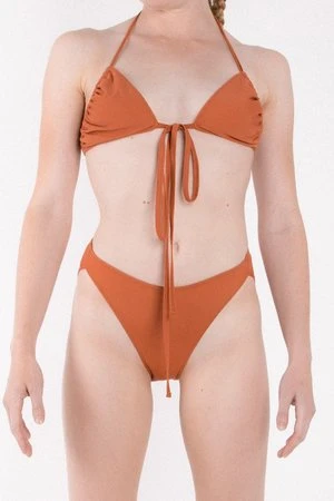 High cut swim briefs with full back coverage. Made with sustainable regenerated ECONYL nylon with SPF 50+ sun protection, providing the piece with strength, complete coverage, and high chlorine resistance. Double layered high cut style, dipped at the front, sitting full over the back and high over the hips. Back panel meets front at just the right point to provide security in the fit of the brief. Edged with concealed rubber elastic internally, to hold the briefs in place.